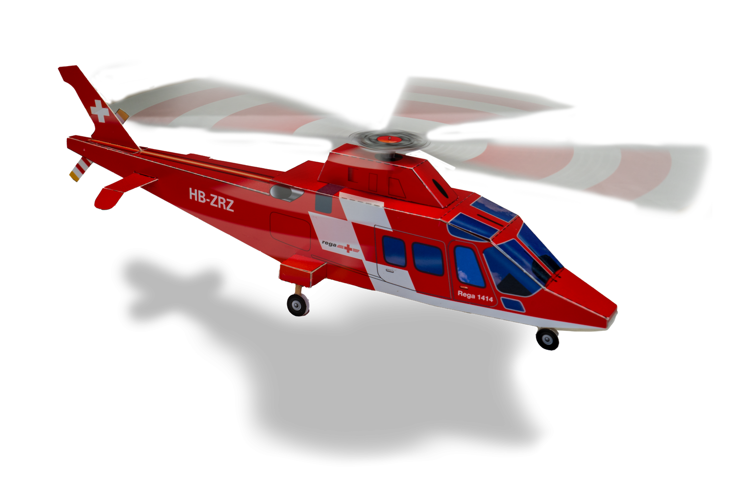 Der Helikopter (auch Hubschrauber genannt) ist eines der jüngeren Verkehrsmittel. Das erste wirklich gebrauchsfähige Modell entstand 1936 in Deutschland nach Plänen von H. Focke. Nach dem zweiten Weltkrieg fand dieses Fluggerät rasche Verbreitung im Rettungs- und Sanitätsdienst, in der Landwirtschaft und im Luftverkehrs-Zubringerdienst. Technisch betrachtet ist der Helikopter ein Drehflügel-Flugzeug. Das Besondere an ihm ist die Tatsache, dass er senkrecht starten und landen, in der Luft stillstehen und auf engstem Raum wenden kann. Seinen Antrieb und Vortrieb erreicht er durch eine oder mehrere Hubschrauben. Eine solche Hubschraubebesteht aus 2 bis 6 (bei unserem Typ 2 und 4) schmalen Flügelblättern, die in einer Nabe beweglich gelagert sind. Durch die rasche Kreisbewegung der Hubschraube entsteht, je nach Anstellwinkel der einzeln verstellbaren Flügelblätter, eine Aufwärts- und Vorwärtsbewegung. Die höchste Fluggeschwindigkeit beträgt 300 km/h, liegt also beträchtlich unter derjenigen eines Propeller- oder gar Strahlflugzeuges. Unser Helikopter vom Typ AgustaWestland Da Vinci gehört der Rega (Schweizerische Rettungsflugwacht), die nun 11 Stück dieser Art besitzt. (Dazu kommen 6 weitere vom Typ Europcopter EC 145). Er ist mit zwei Turbinen-Triebwerken à 815 PS, mit Satelliten-Navigation und damit kombinierter Bildschirm-Landkarte, mit modernsten Funkgeräten, einem superstarken Suchscheinwerfer und digitalem Autopilot-System ausgerüstet. Für die Rettungseinsätze am Unfallort dienen neben der 90 m langen Rettungswinde eine Vielzahl von medizinischen Geräten und Apparaturen. Retten und helfen - das ist das Ziel der Rega. Ihre Schnelligkeit und Zuverlässigkeit sind sprichwörtlich geworden. Die 13 Einsatzbasen sind so über das ganze Land verteilt, dass fast jeder Einsatzort innerhalb einer Viertelstunde erreichbar ist. Jedes Jahr werden Abertausende von Einsätzen geflogen, auch ins Ausland, und viele Menschen wirksam aus einer grossen Notlage befreit oder gar vor dem sicheren Tod gerettet. Weitere Informationen unter: www.rega.ch |
