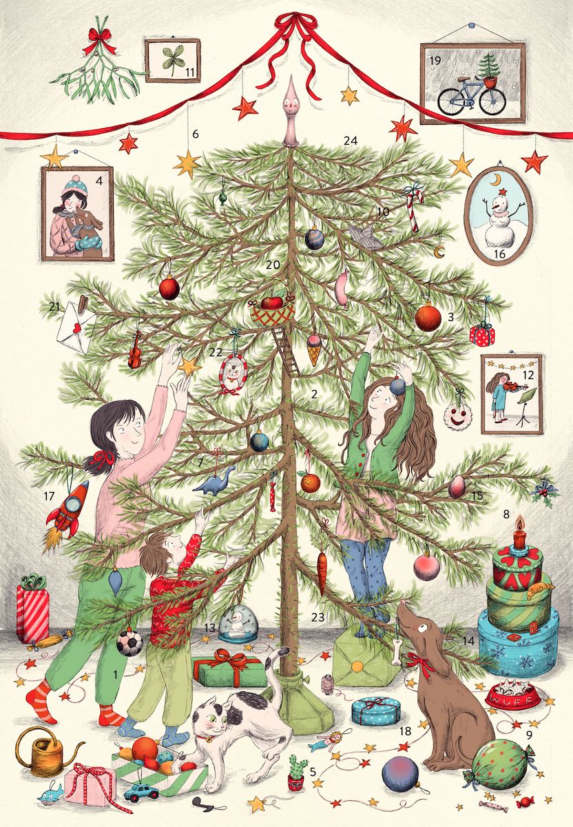 Die Illustratorin Ruth Cortinas hat einen Kalender kreiert, der jung und alt erfreut. 24 Türchen warten darauf, geöffnet zu werden, um die Tage bis Weihnachten mit Freude und Spass zu bereichern.